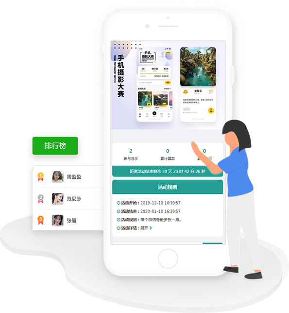 專業(yè)第三方微信投票評選活動制作平臺,3分鐘即可制作一場活動,已穩(wěn)定運行853天,創(chuàng)建活動超200萬場,無任何隱性消費。